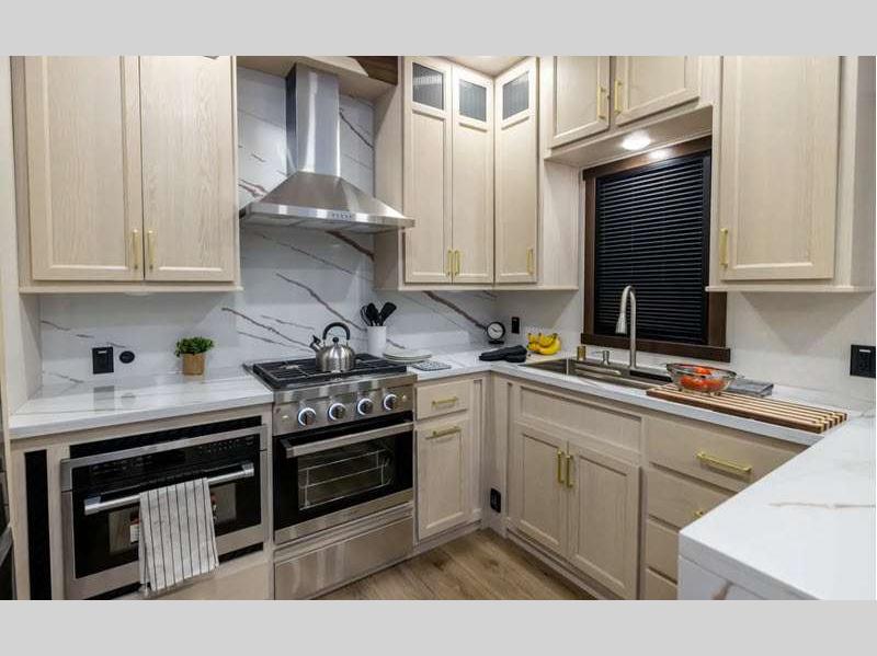 Forest River Cedar Creek fifth wheel 395WOW highlights: Rear Kitchen Pull-Out ... more about Cedar Creek 395WOW