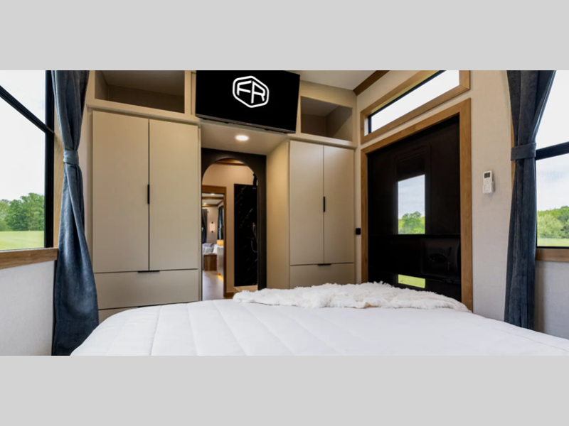 Sleeps 4 Slides 2 Length 43 ft 11 in Ext Width 8 ft 5 in Ext Height 13 ft 6 in Hitch Weight 1650 lbs GVWR 16200 lbs Dry Weight 14421 lbs Cargo Capacity 1779 lbs Fresh Water Capacity 79 gals Grey Water Capacity 80 gals Black Water Capacity 40 gals Tire Size 17.5" Furnace BTU 40000 btu Available Beds Queen Refrigerator Type Samsung French Door w/Ice Maker Refrigerator Size 18 cu ft Cooktop Burners 4 LP Tank Capacity 40 lbs Water Heater Type Truma On Demand AC BTU 30000 btu TV Info LR 50" Smart LED TV, BR 50" Smart LED TV Washer/Dryer Available Yes Number of LP Tanks 2 Shower Type Standard Similar Floorplans