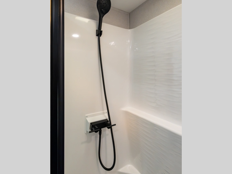 Sleeps 4 Slides 5 Ext Width 8 ft 5 in Int Height 7 ft Exterior Color Full Body Paint Pearl White and Black (required with paint option) Tire Size 16" Furnace BTU 35000 btu Available Beds King Refrigerator Type Stainless Steel 12V Refrigerator Size 18 cu ft Cooktop Burners 4 Shower Size 48" x 30" Number of Awnings 2 Axle Weight 8000 lbs LP Tank Capacity 30 lbs Water Heater Capacity 12 gal AC BTU 45000 btu TV Info LR 50" Smart TV, BR Smart TV Awning Info 18' and 19' Power w/LED Lighting Axle Count 2 Washer/Dryer Available Yes Number of LP Tanks 2 Shower Type Standard Solar Wattage 260 watts Similar Floorplans