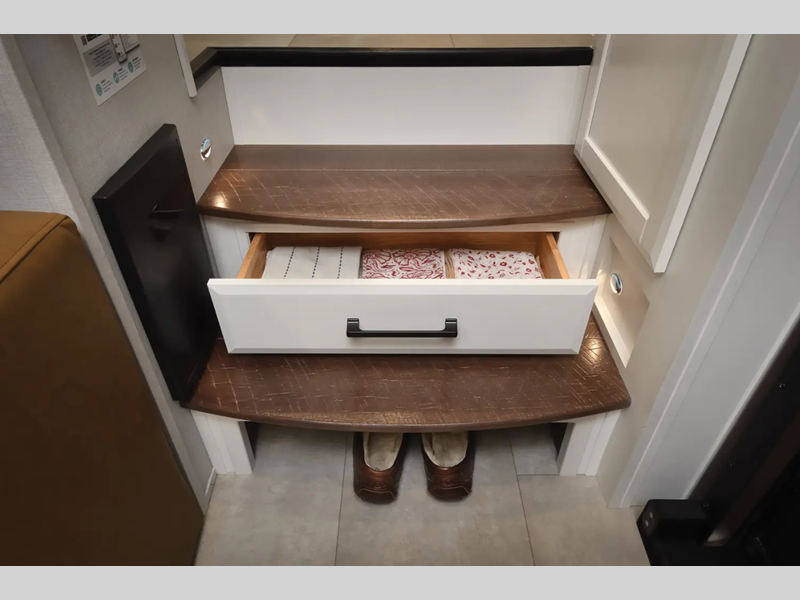 You will truly appreciate the stackable washer/dryer because it will allow you to travel without restraint, and the Truma Aqua Go Comfort on-demand hot water heater will give you hot water whenever you need it. You'll stay entertained with a Samsung LED Smart TV in the living room and a 40" LED TV in the bedroom, and the 200W solar panel will provide some off-grid capabilities.