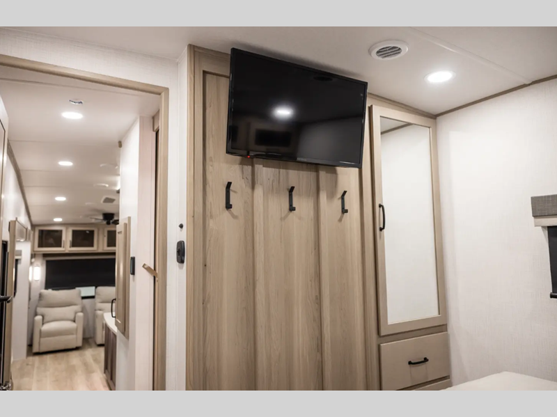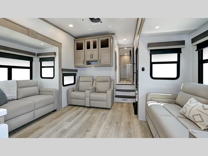 Sleeps 6 Slides 4 Length 36 ft 10 in Ext Width 8 ft Ext Height 13 ft 2 in Hitch Weight 1740 lbs Dry Weight 10379 lbs Cargo Capacity 1761 lbs Fresh Water Capacity 54 gals Grey Water Capacity 92 gals Black Water Capacity 53 gals Tire Size 16" Furnace BTU 35000 btu Available Beds Queen Refrigerator Type 12V Cooktop Burners 3 Number of Awnings 2 LP Tank Capacity 30 lbs Water Heater Capacity 12 gal Water Heater Type Quick Recovery Auto Ignition Gas/Electric AC BTU 30000 btu TV Info LR Smart TV Awning Info 25' Power w/Adjustable Rain Dump & LED Light Strip Axle Count 2 Washer/Dryer Available Yes Number of LP Tanks 2 Shower Type Shower w/Seat Electrical Service 50 amp Similar Floorplans