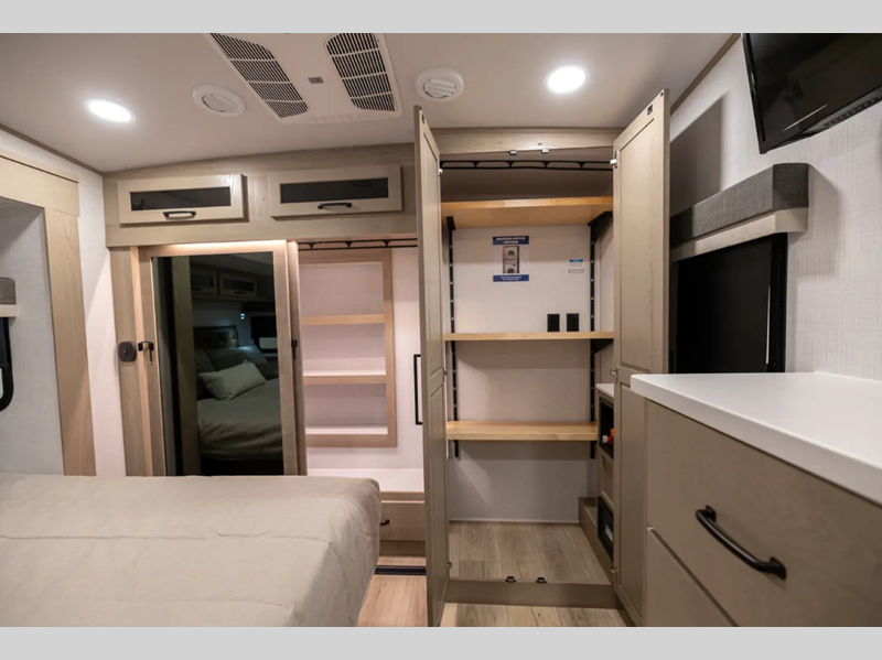Sleeps 2 Slides 3 Length 29 ft 10 in Ext Width 8 ft Ext Height 13 ft 3 in Hitch Weight 1635 lbs Dry Weight 8764 lbs Cargo Capacity 2134 lbs Fresh Water Capacity 54 gals Grey Water Capacity 180 gals Black Water Capacity 39 gals Tire Size 16 Furnace BTU 35000 btu Available Beds Queen Refrigerator Type 12V Cooktop Burners 3 Number of Awnings 2 LP Tank Capacity 30 Lbs. Water Heater Capacity 12 gal Water Heater Type Gas/Electric TV Info LR Smart TV Awning Info 11´ & 13´ Power with Adjustable Rain Dump and LED Light Strip Axle Count 2 Washer/Dryer Available Yes Number of LP Tanks 2 Shower Type Shower w/Seat Electrical Service 50 amp Solar Wattage 200 watts Similar Floorplans