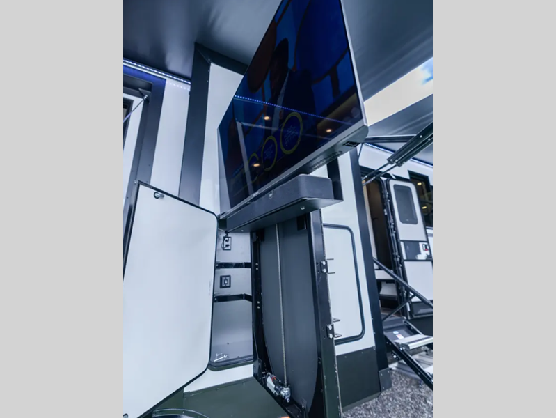 These toy haulers are 3/4 ton or 1 ton towable, and the additional height and width provides extra room for your toys to come along too. The MORryde CRE3000 suspension enhancement makes towing smooth and the hydraulic leveling will have you set up at camp in no-time. The contemporary interior design will make your space feel a little more like home and the Congoleum stain-resistant vinyl flooring is perfect for a toy hauler with dirt, gas, and oil being brought in.